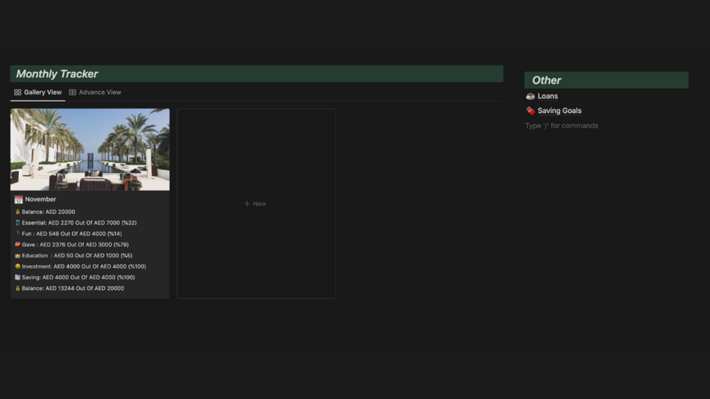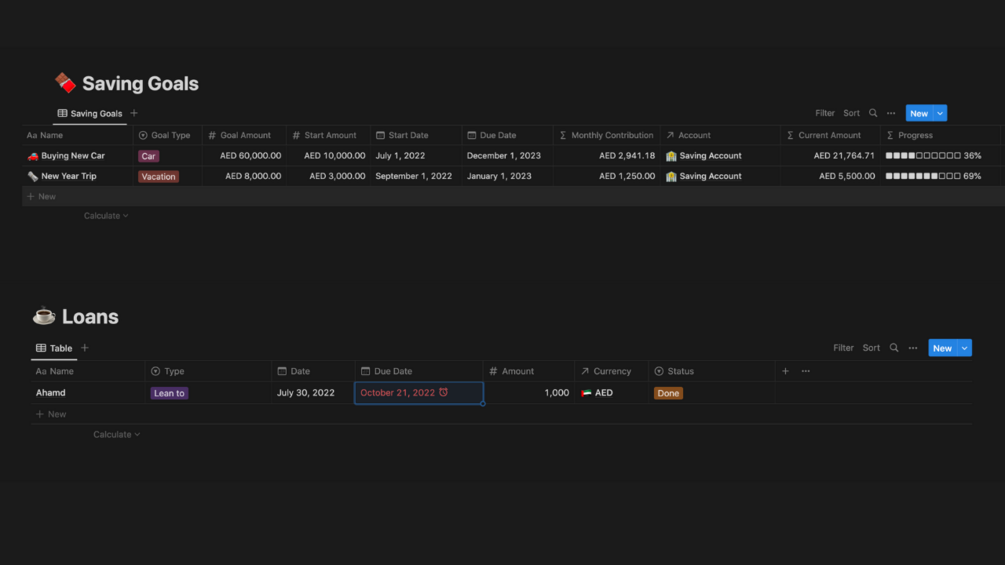 • Saving goal section: to add you finical goal and checkout out how and when you can achieve it.